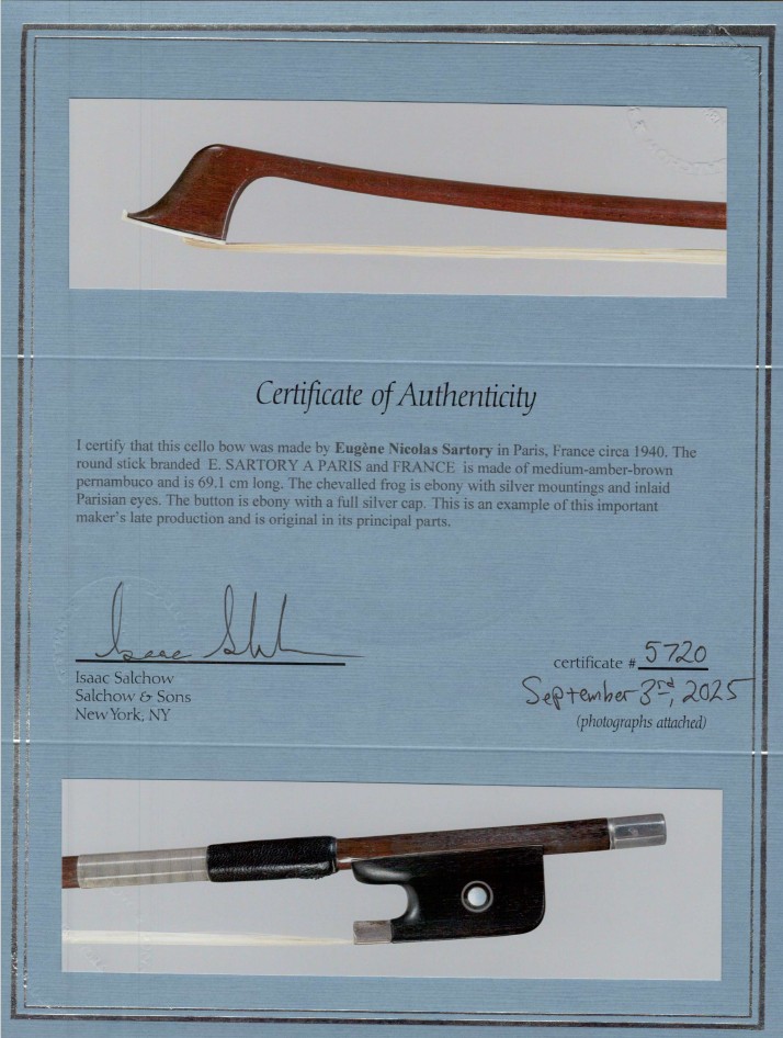 Lot 141, A silver-mounted cello bow by Eugène Sartory, Paris, circa 1940
