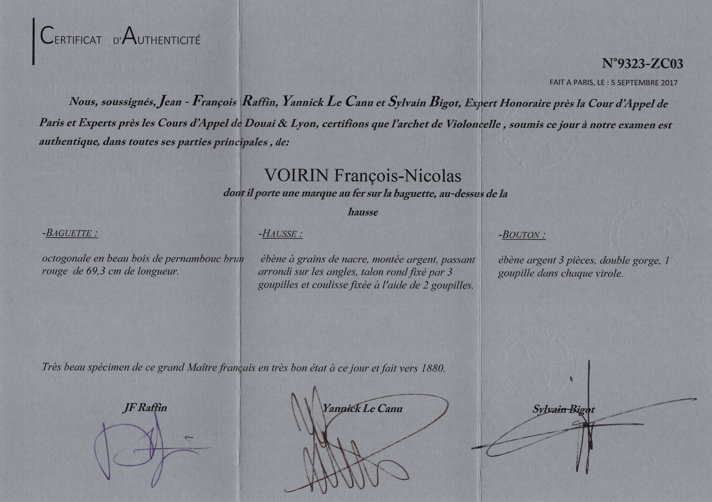 Lot 132, A silver-mounted cello bow by François Nicolas Voirin, Paris, circa 1880