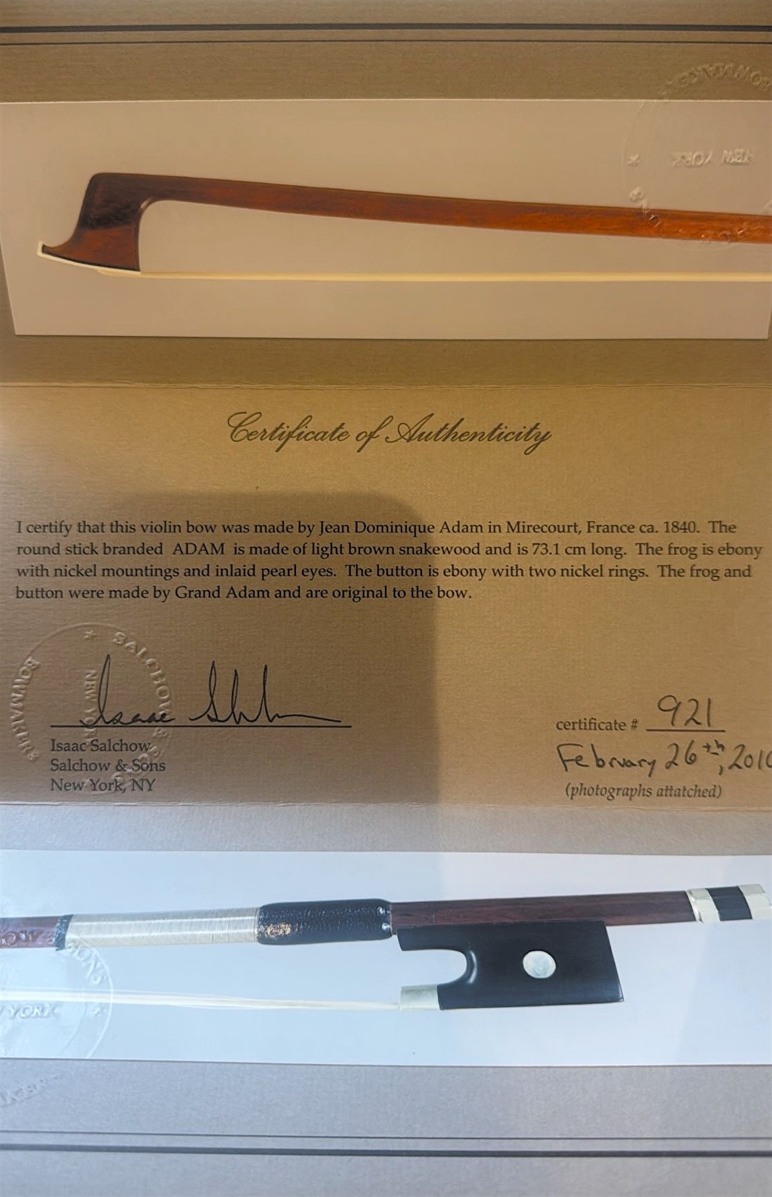 round stick, the ebony frog with pearl eyes, the adjuster with two nickel bands, the frog and adjuster by Jean 'Grand' Adam