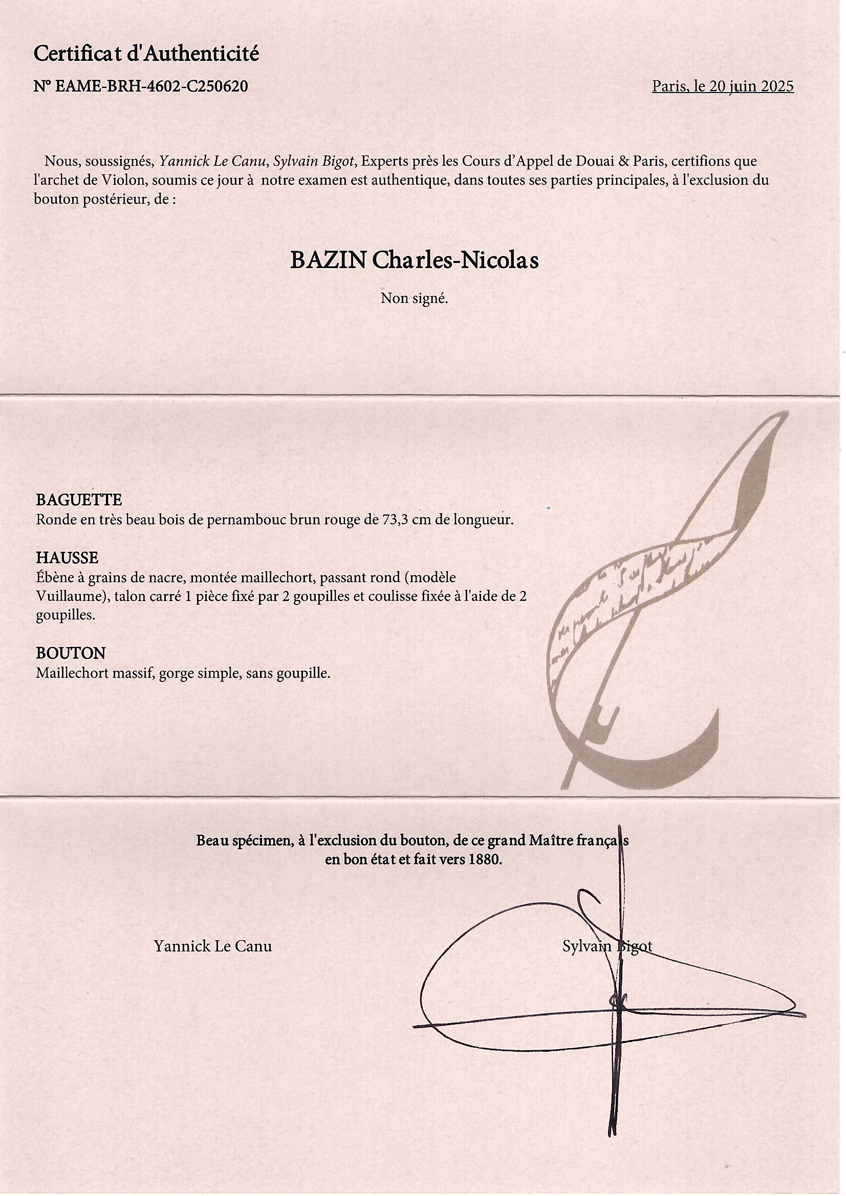 Sold with the certificate of Cabinet d'Archetiers Experts, Paris, dated 20th June 2025