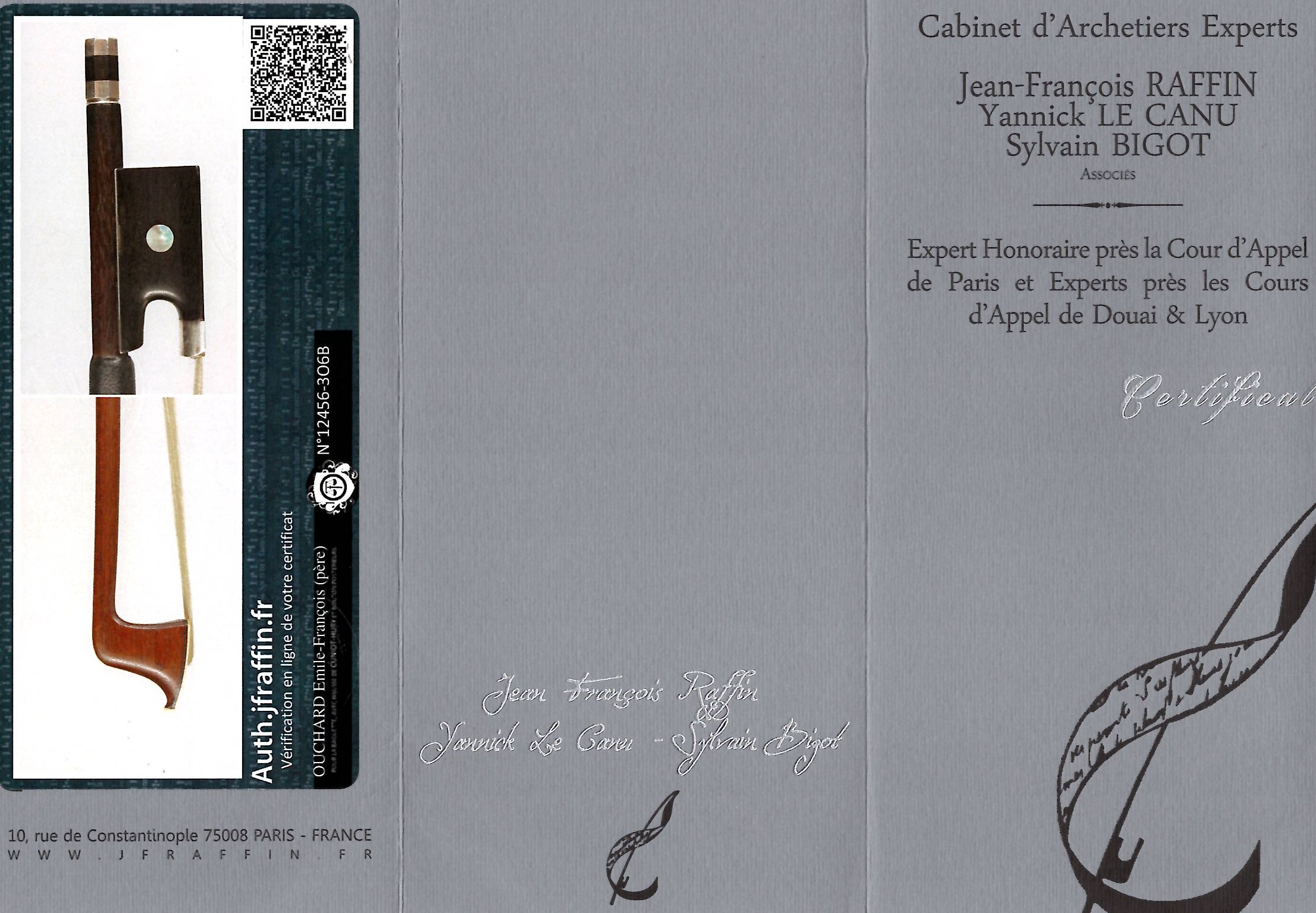Lot 231, A silver-mounted violin bow by Émile François Ouchard, Mirecourt, circa 1920