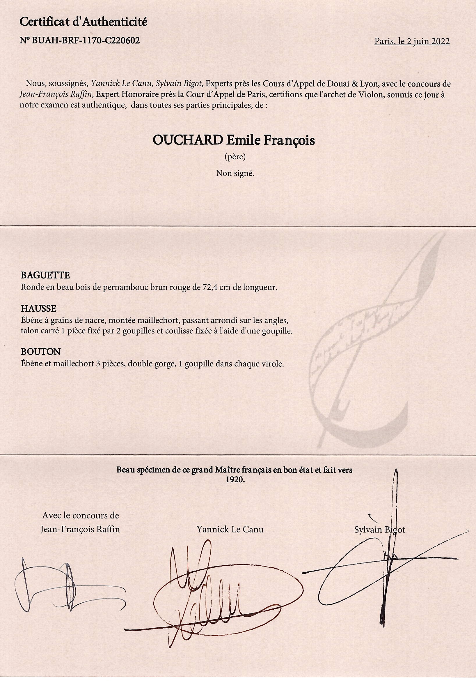 Sold with the certificate of Cabinet d'Archetiers Experts, Paris, dated 2nd June 2022