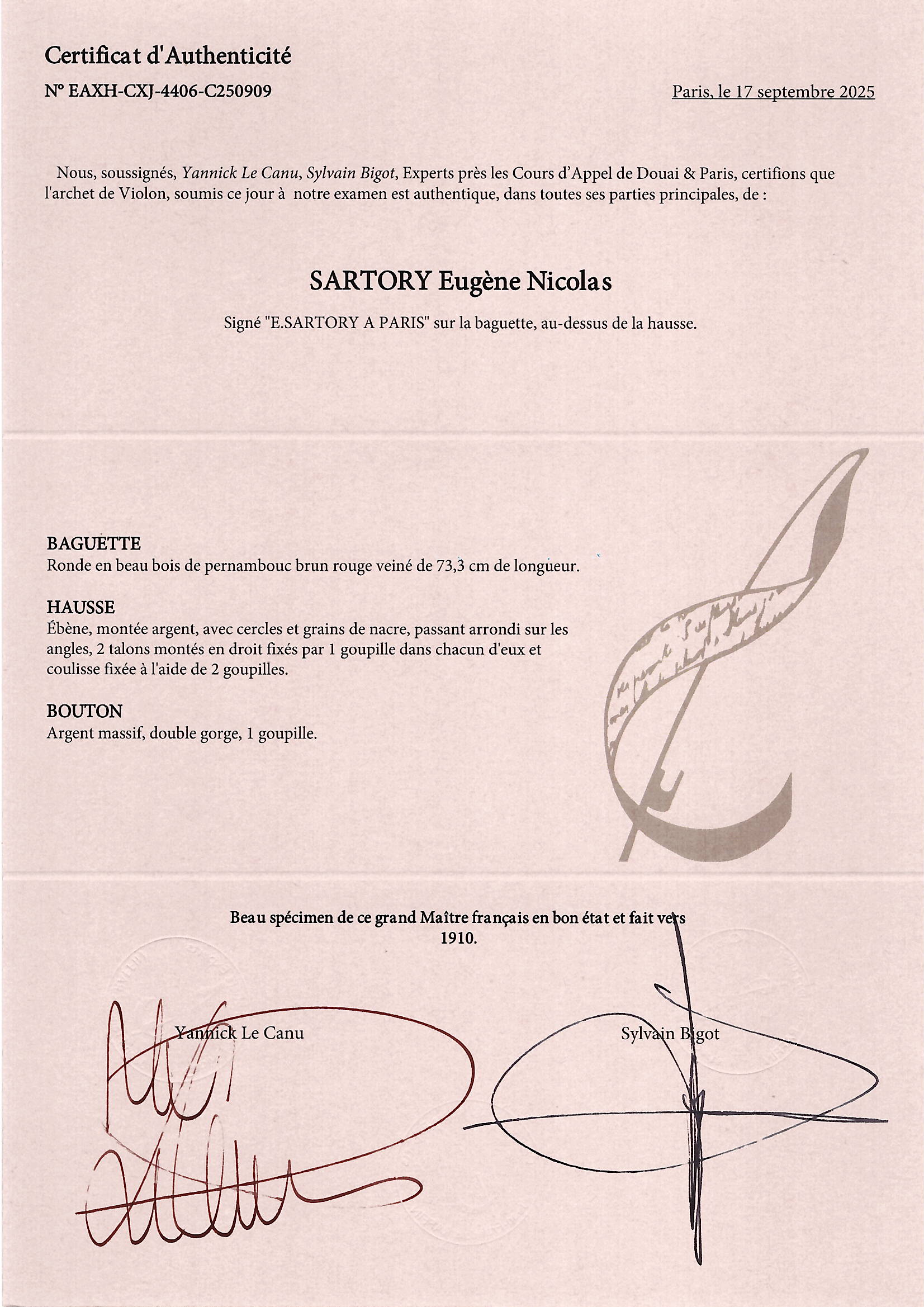 Sold with the certificate of Cabinet d'Archetiers Experts, Paris, dated 17th September 2025