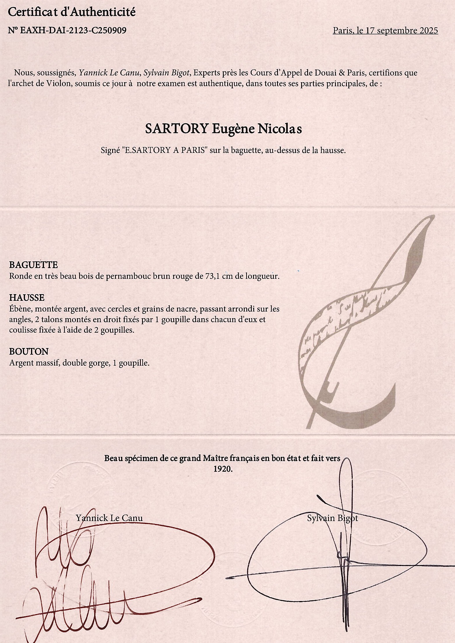 Sold with the certificate of Cabinet d'Archetiers Experts, Paris, dated 17