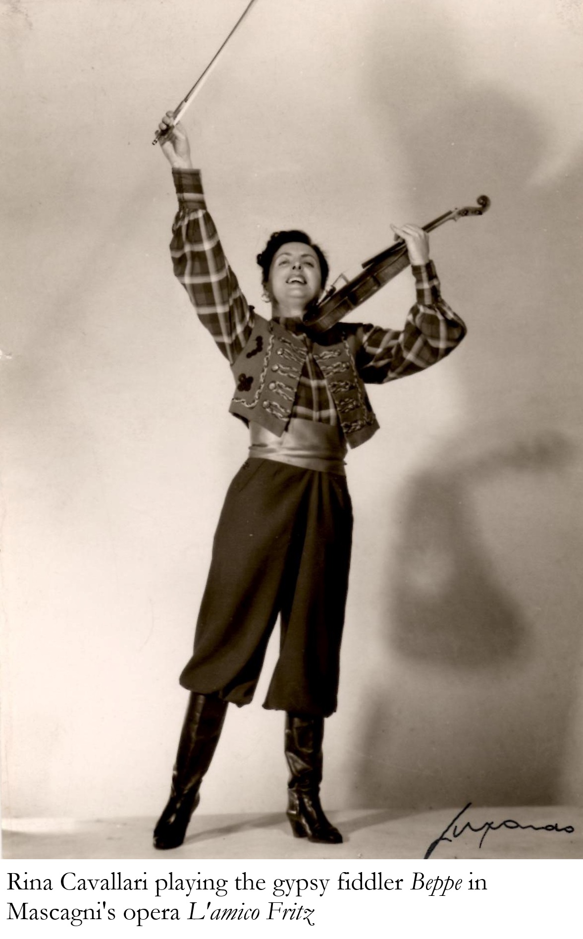 Rina Cavallari was born in Ferrara in 1914 and studied the violin and opera in Milan and Genoa. She became one of the foremost Italian mezzo-sopranos of her generation and performed regularly at La Scala, Milan, and other major European opera houses. She made a number of recordings with Maria Callas in the 1950s, including the two famous 1954 recordings of Bellini's Norma and Verdi's La Forza del Destino.