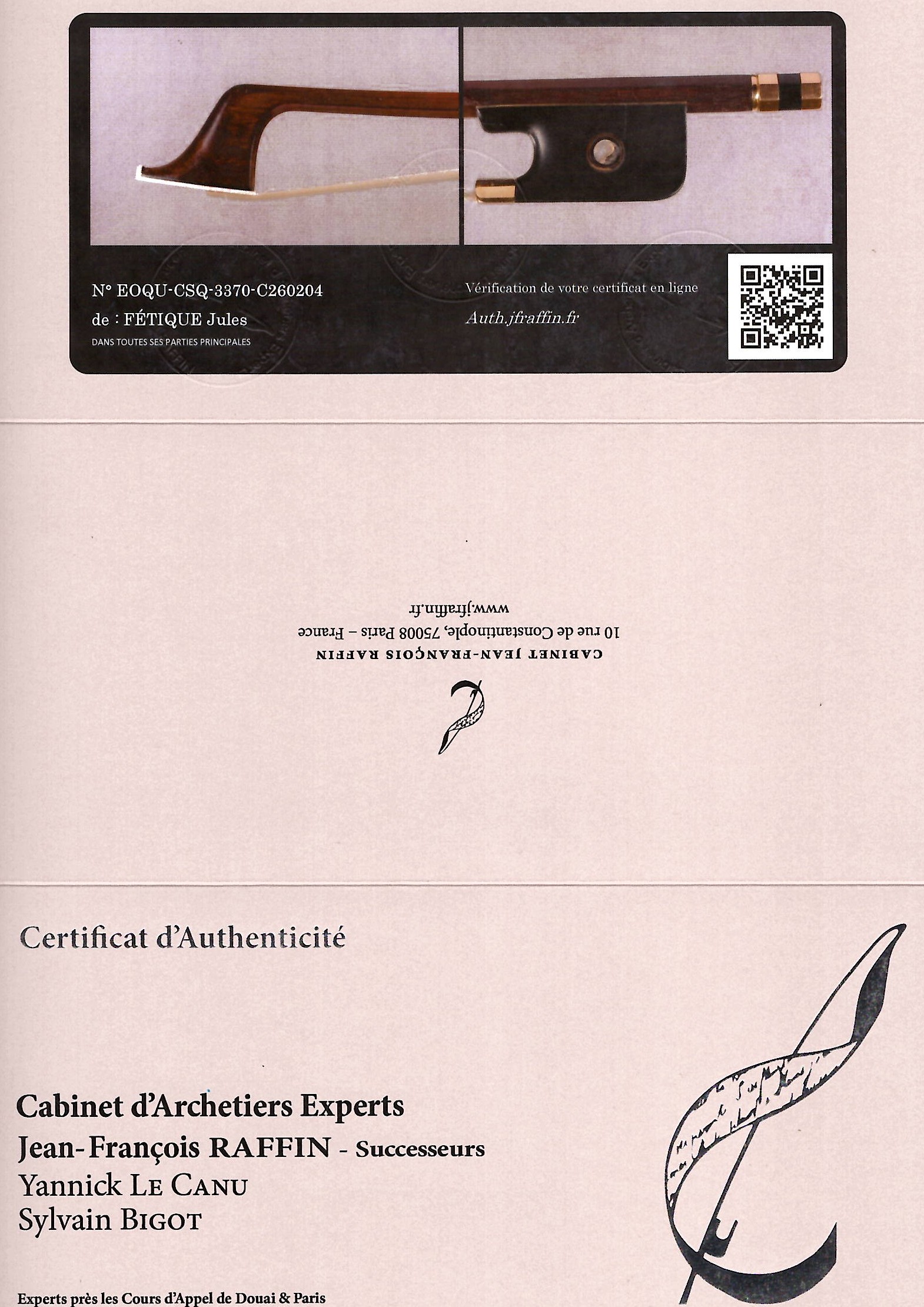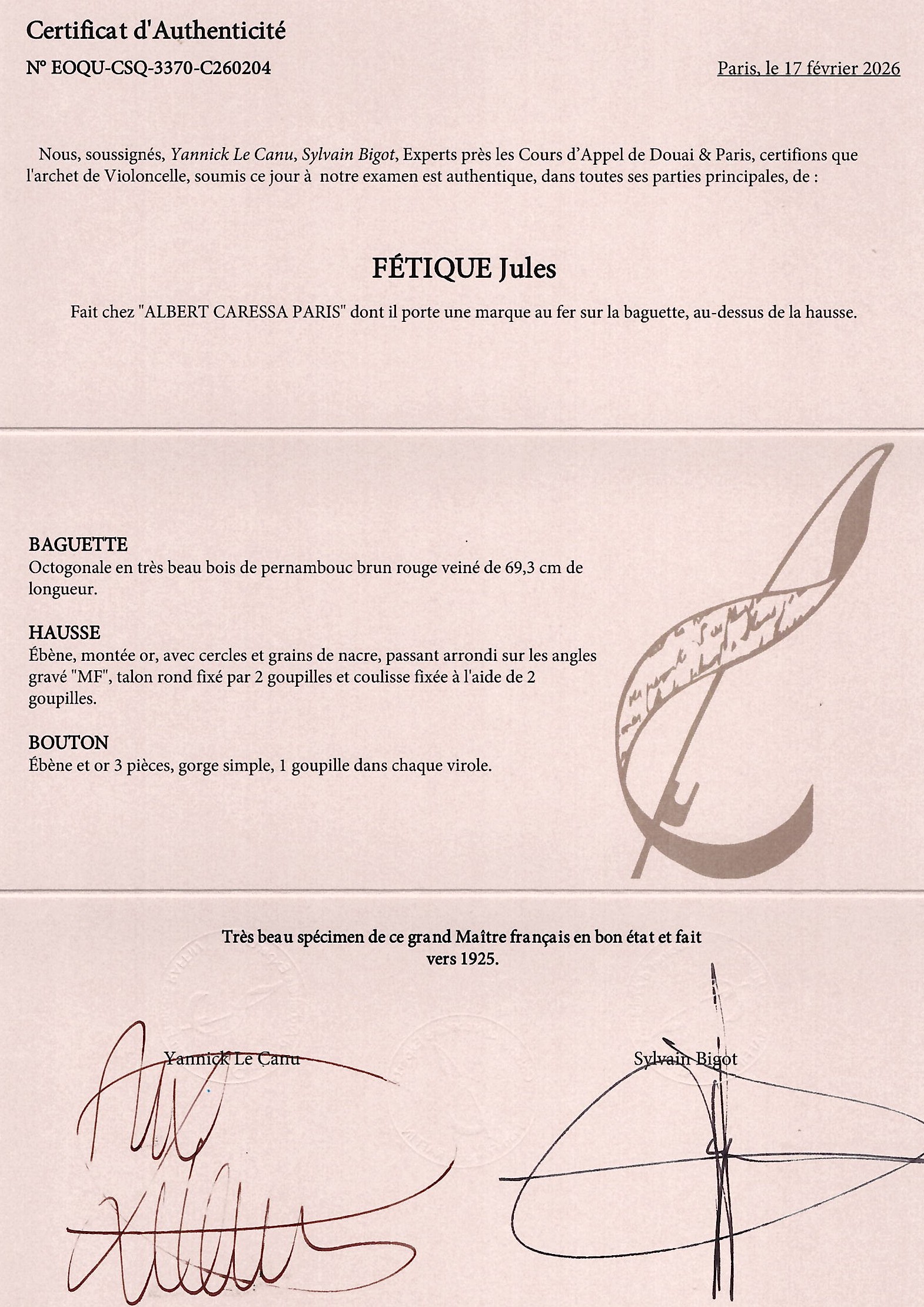 The stick of this bow is made of pernambuco and requires a UK re-export CITES permit - this will be applied for after the auction and a charge of £75 will be added to the invoice if you are registered outside the UK