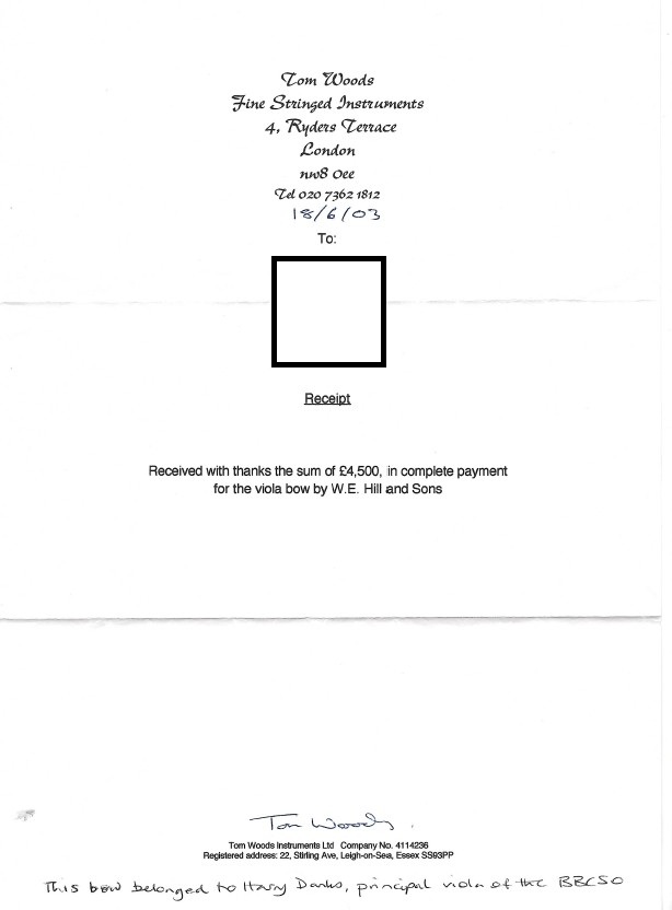 Sold with a receipt from Tom Woods Fine Stringed Instruments, London, dated 18th June 2003