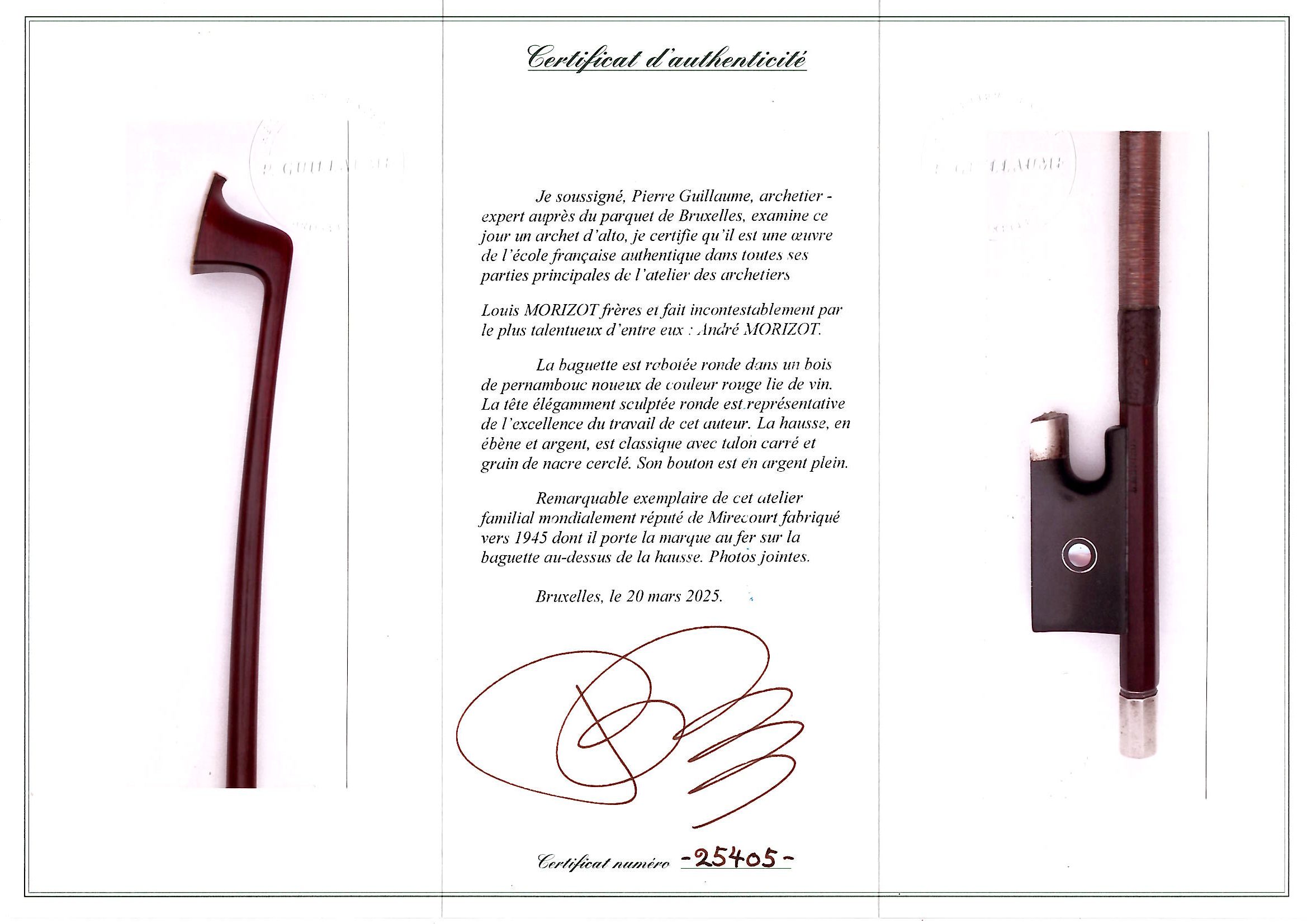 The stick on this bow is made of pernambuco and requires a UK re-export CITES permit - this will be applied for after the auction and a charge of £50 will be added to the invoice if you are registered outside the UK