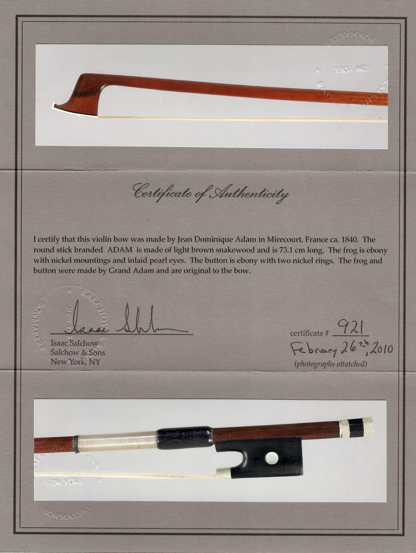 The stick on this bow is made of pernambuco and requires a UK re-export CITES permit - this will be applied for after the auction and a charge of £50 will be added to the invoice if you are registered outside the UK