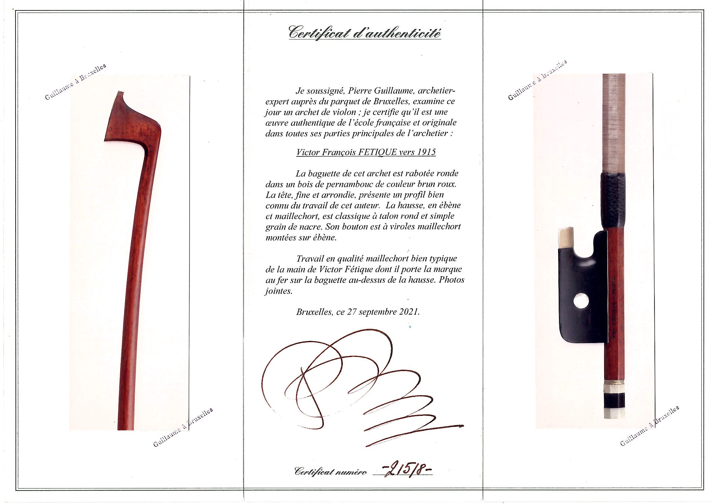The stick on this bow is made of pernambuco and requires a UK re-export CITES permit - this will be applied for after the auction and a charge of £50 will be added to the invoice if you are registered outside the UK