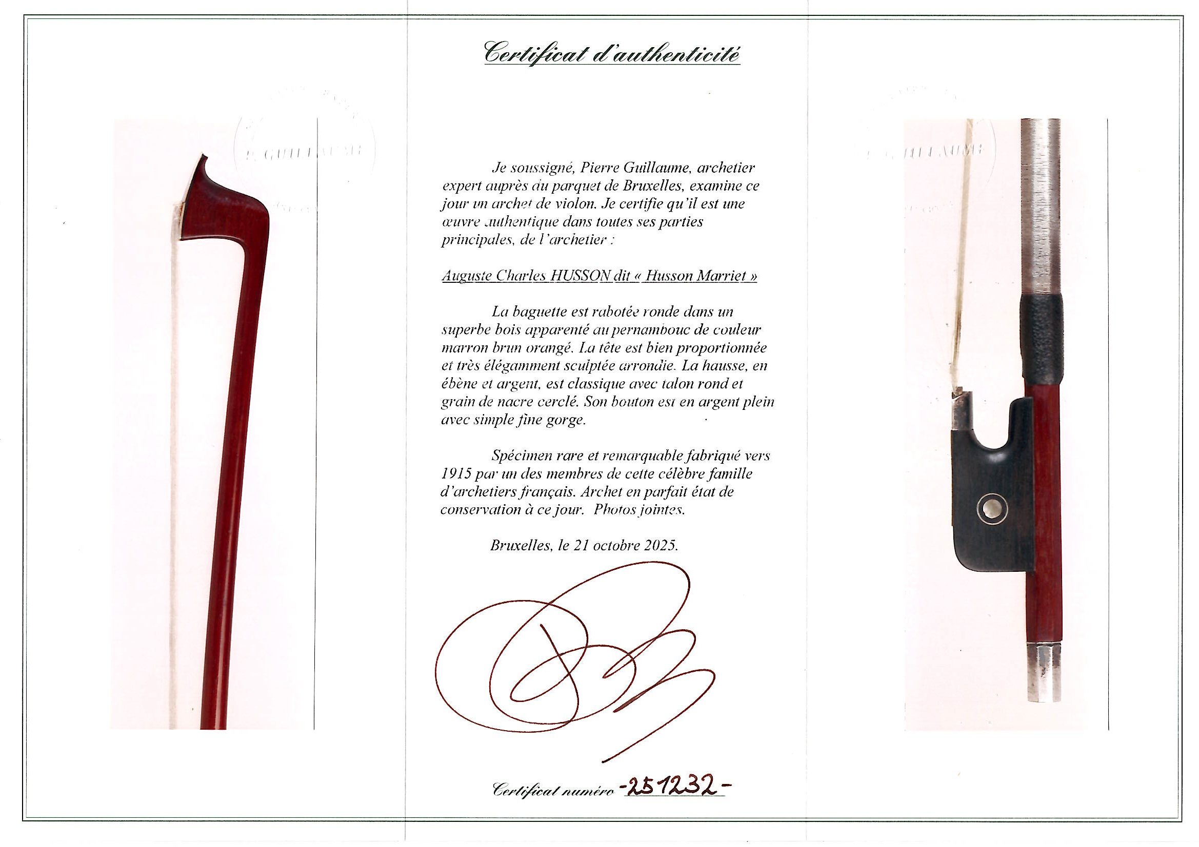 Sold with the certificate of Pierre Guillaume, Brussels, dated 21st October 2025