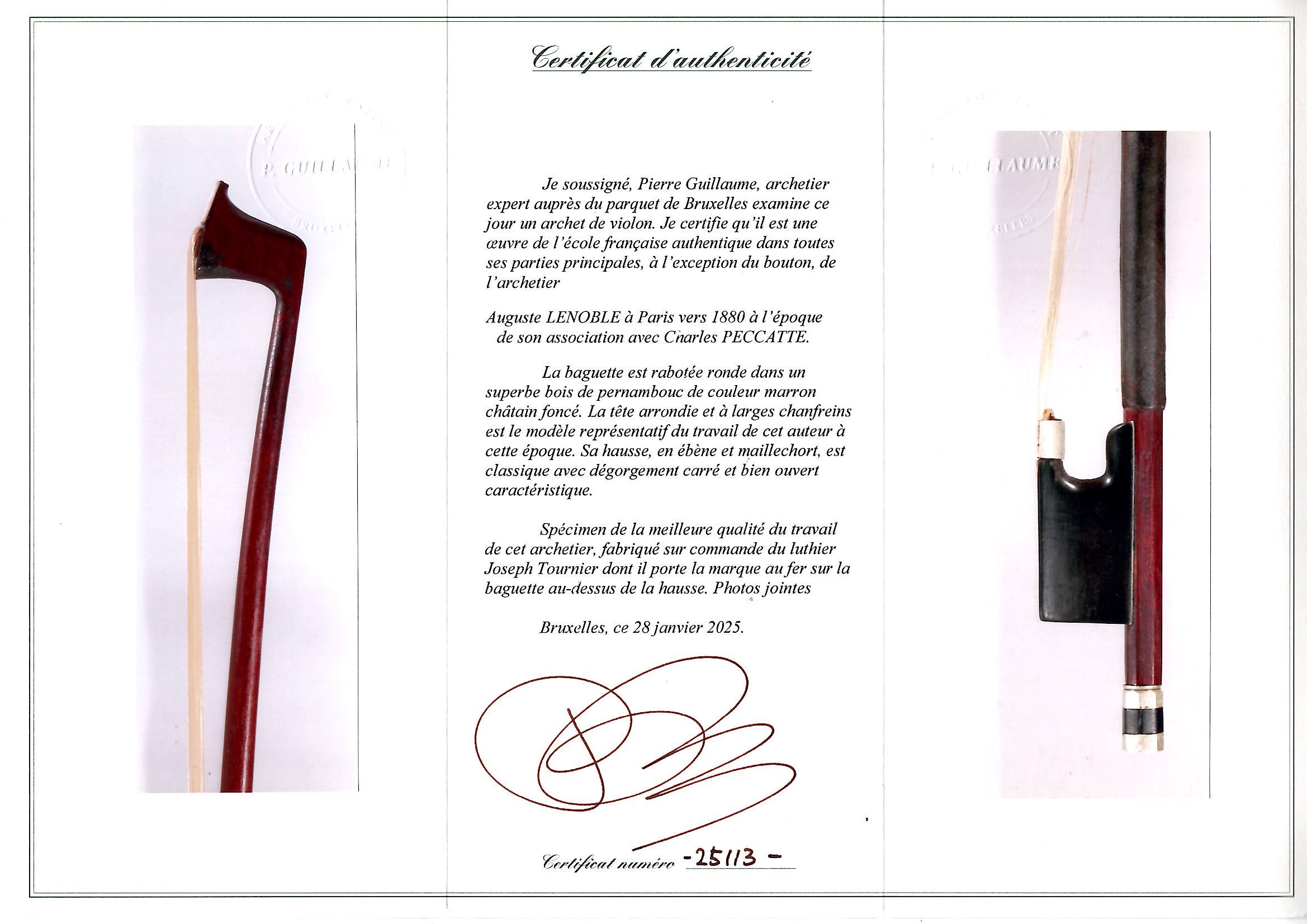The stick on this bow is made of pernambuco and requires a UK re-export CITES permit - this will be applied for after the auction and a charge of £50 will be added to the invoice if you are registered outside the UK