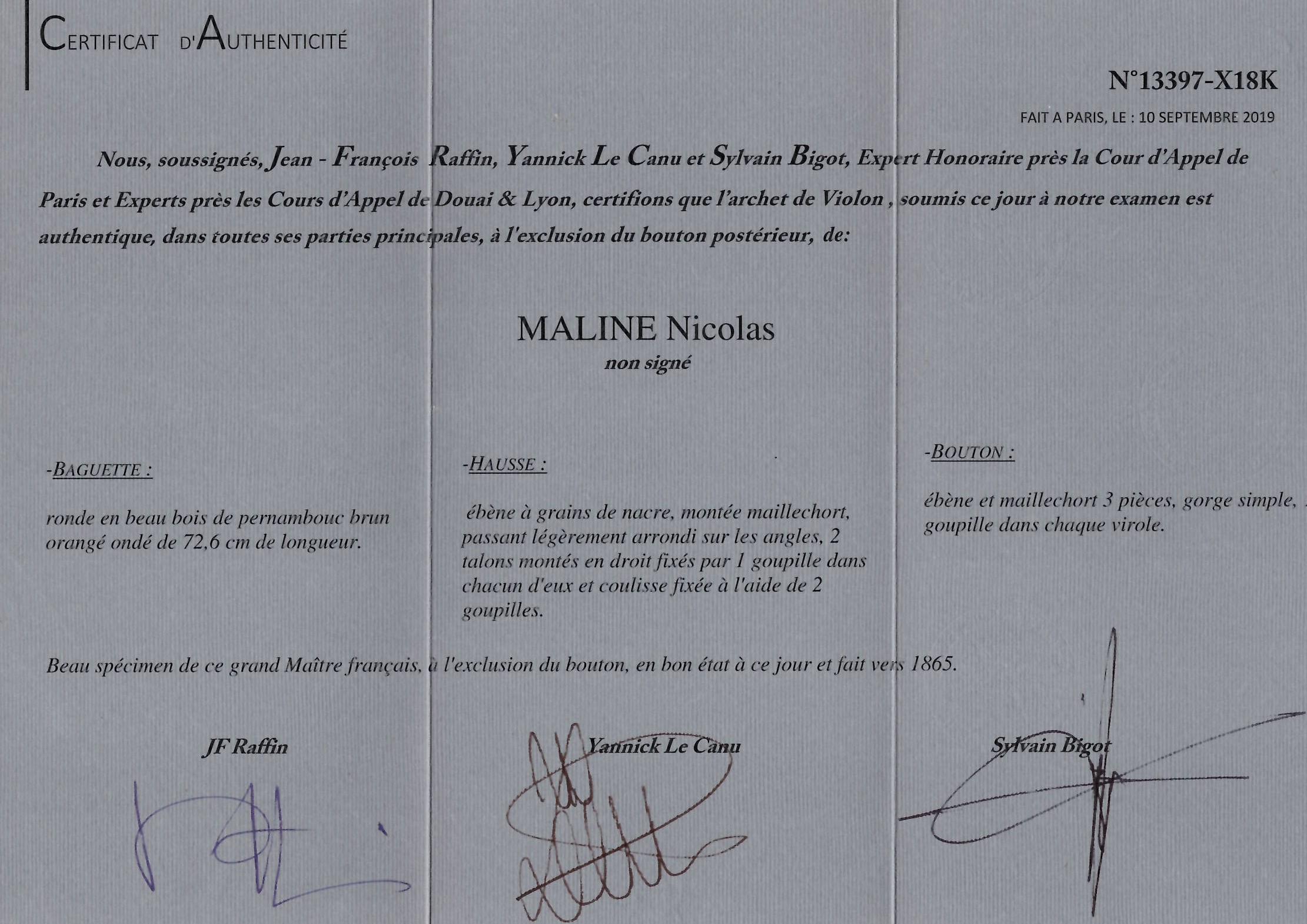 The stick on this bow is made of pernambuco and requires a UK re-export CITES permit - this will be applied for after the auction and a charge of £50 will be added to the invoice if you are registered outside the UK