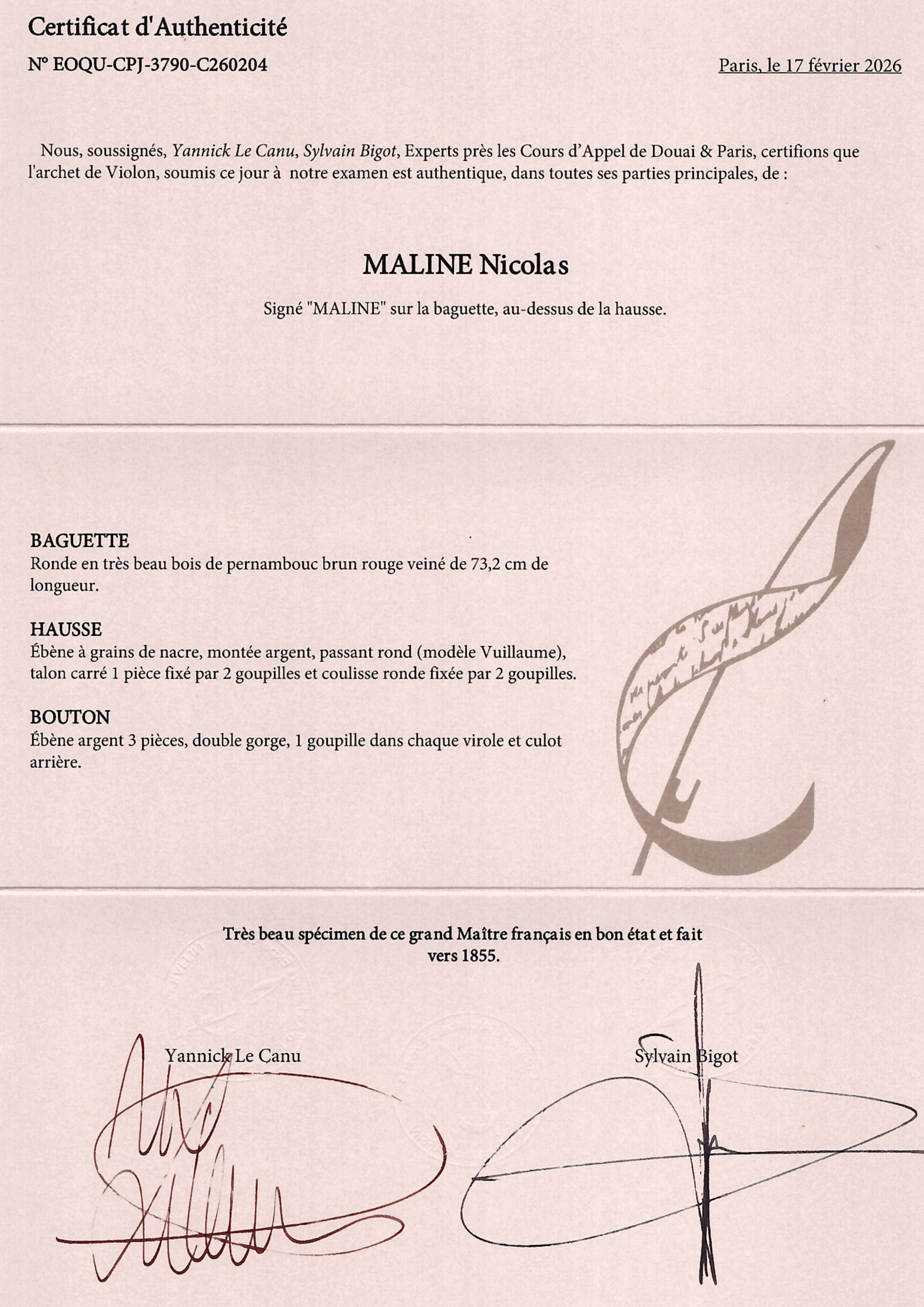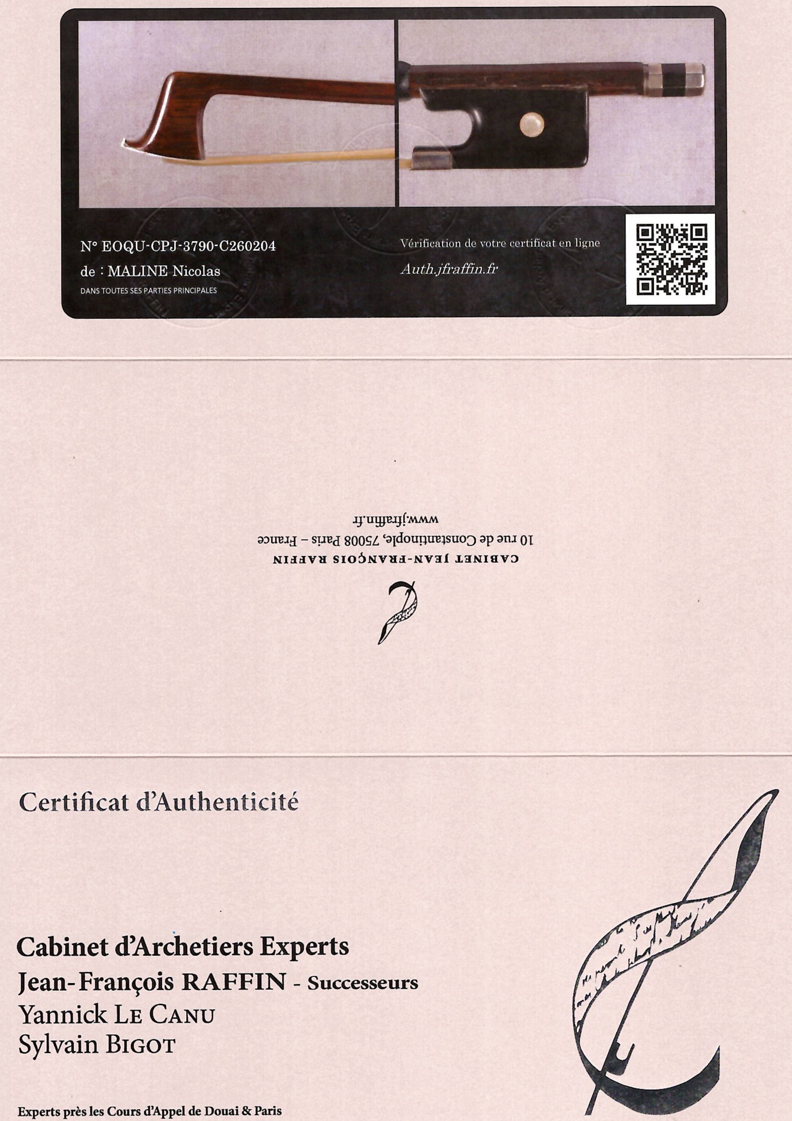 The stick of this bow is made of pernambuco and the faceplate is made of ivory. Both require UK re-export CITES permits - these will be applied for after the auction and a charge of £100 will be added to the invoice if you are registered outside the UK