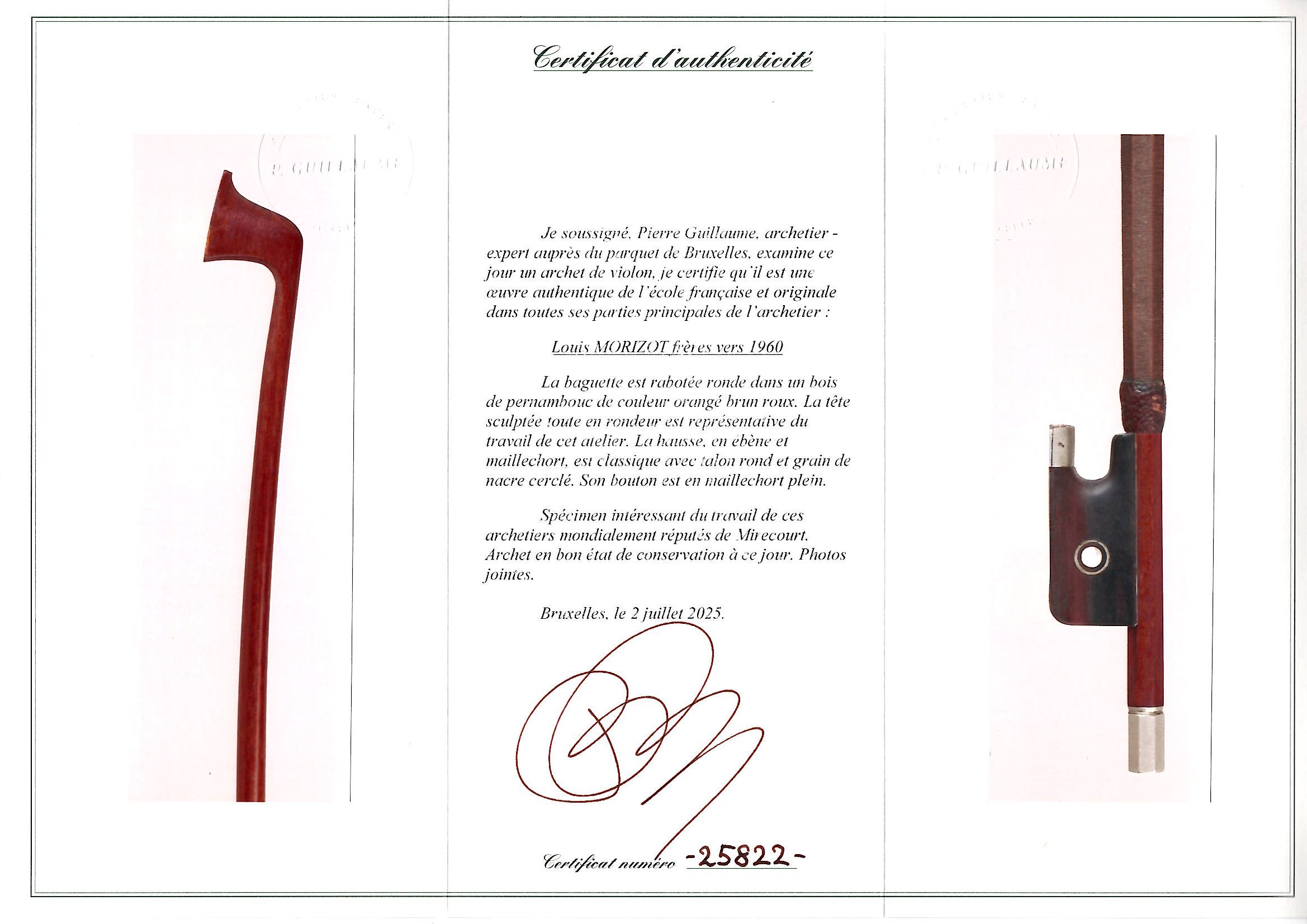 Sold with the certificate of Pierre Guillaume, Brussels, dated 2nd July 2025