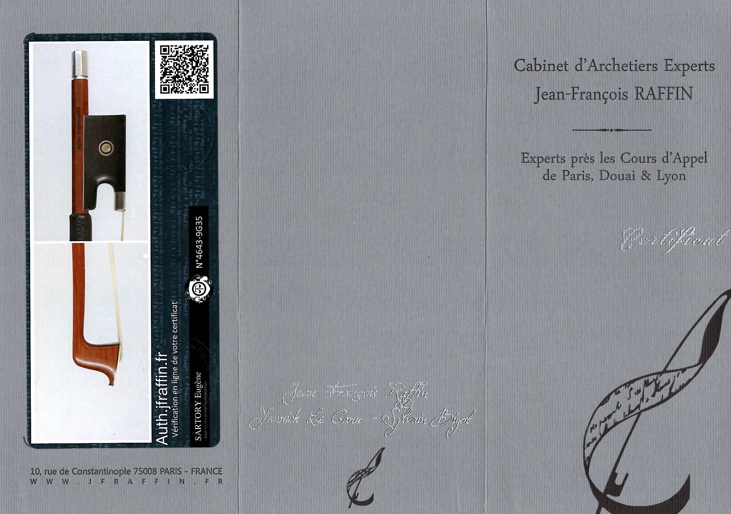 Lot 182, A silver-mounted violin bow by Eugène Sartory, Paris, circa 1900