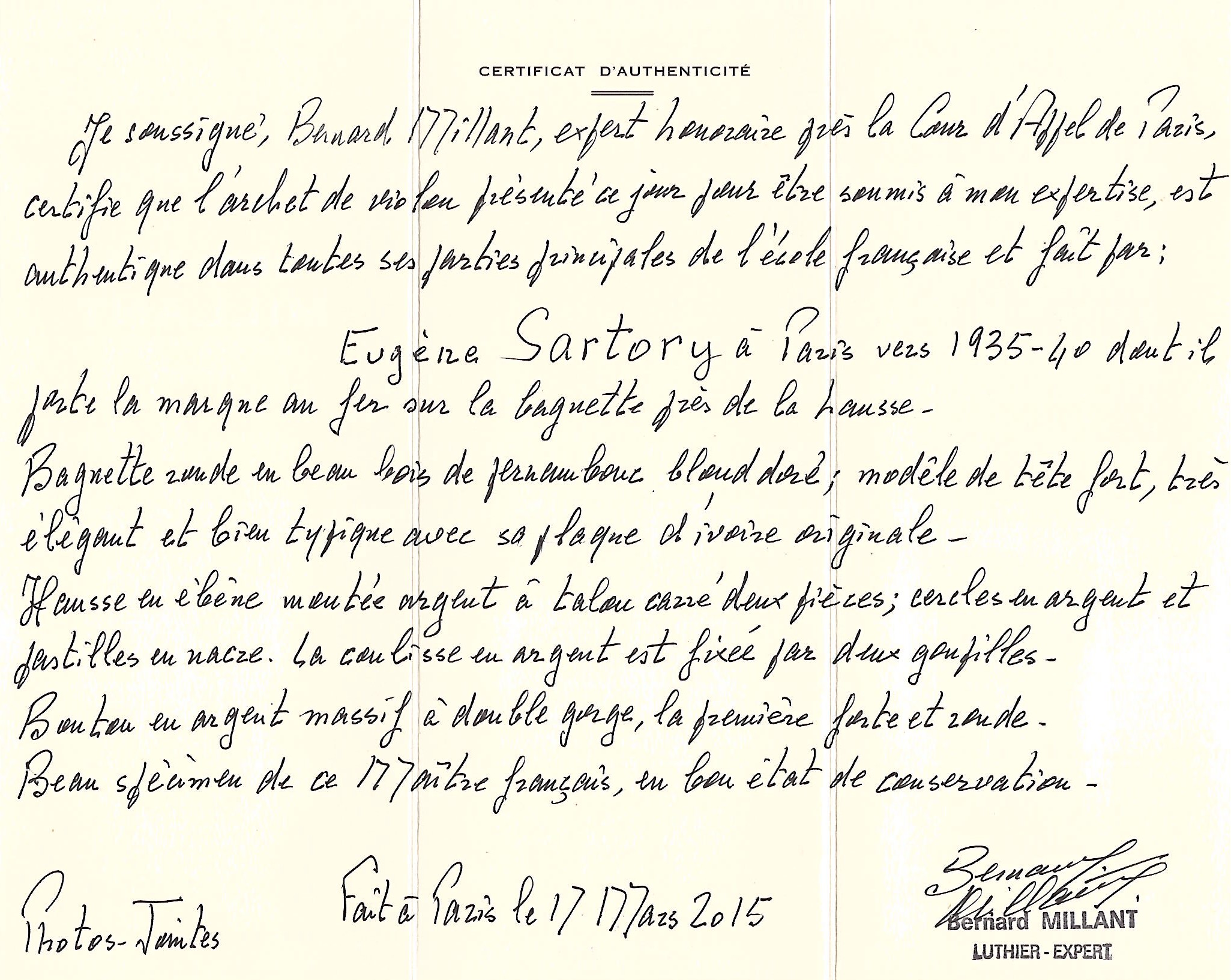Lot 182, A silver-mounted violin bow by Eugène Sartory, Paris, circa 1900