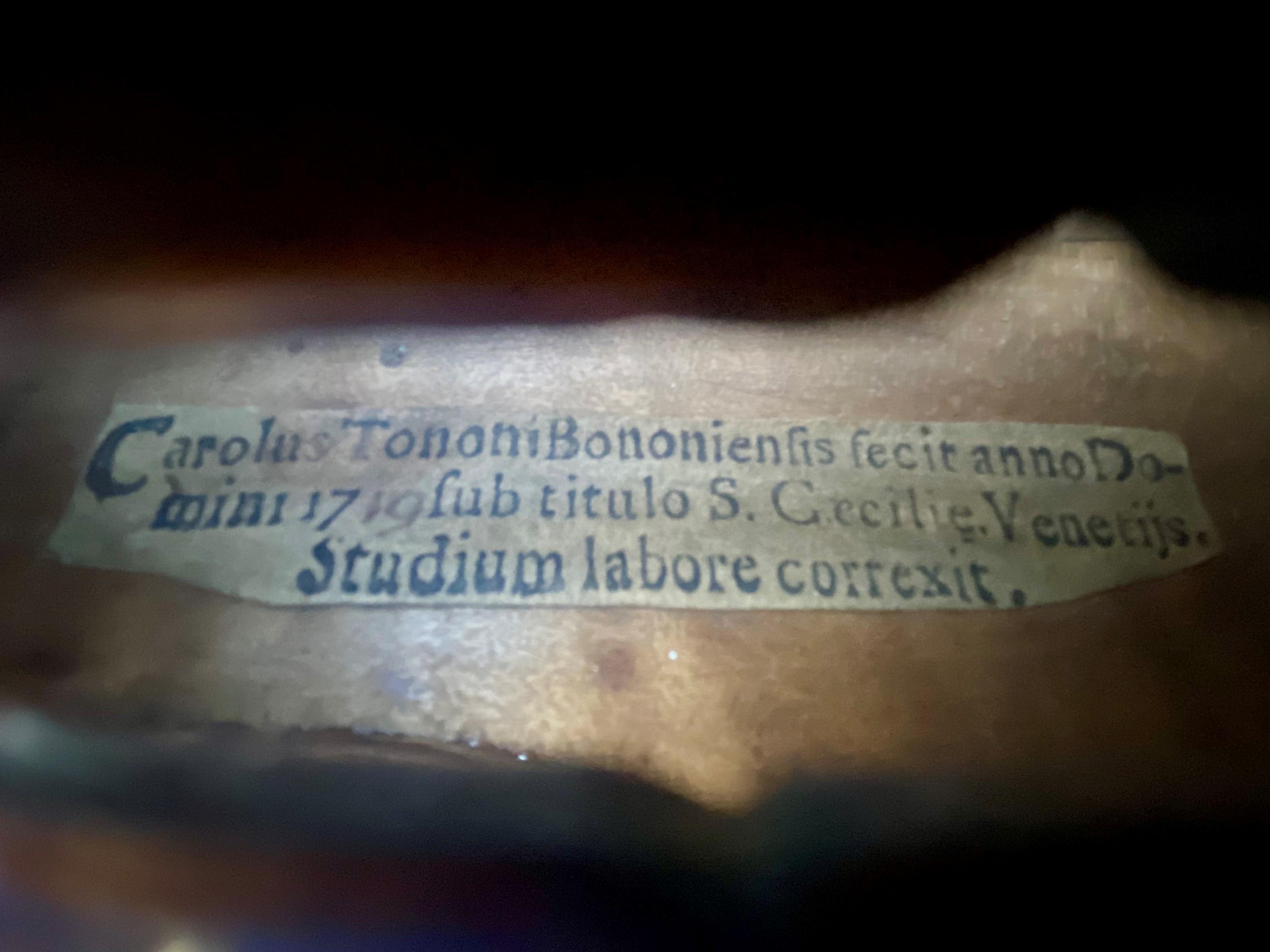 labelled Carolus Tononi Bononiensis fecit anno Domini 1719 sub titulo S. Cecilie. Venetijs. Studium labore correxit.
