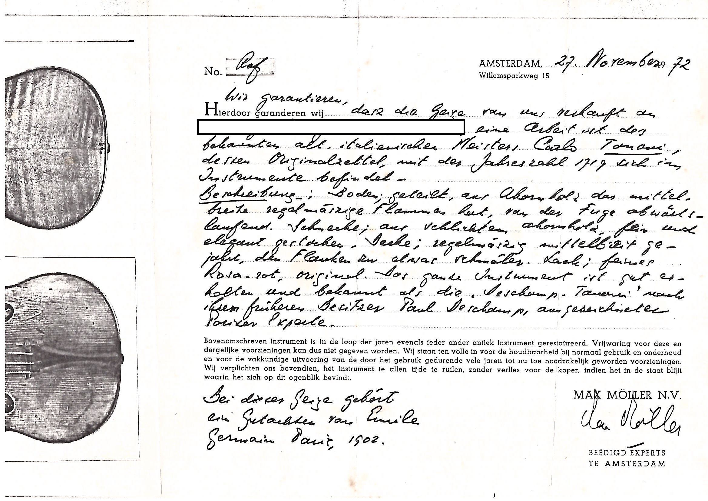 Sold with the certificate of Émile Germain, Paris, dated 10th January 1902, and a copy of the certificate of Max Möller, Amsterdam, dated 27th November 1972
