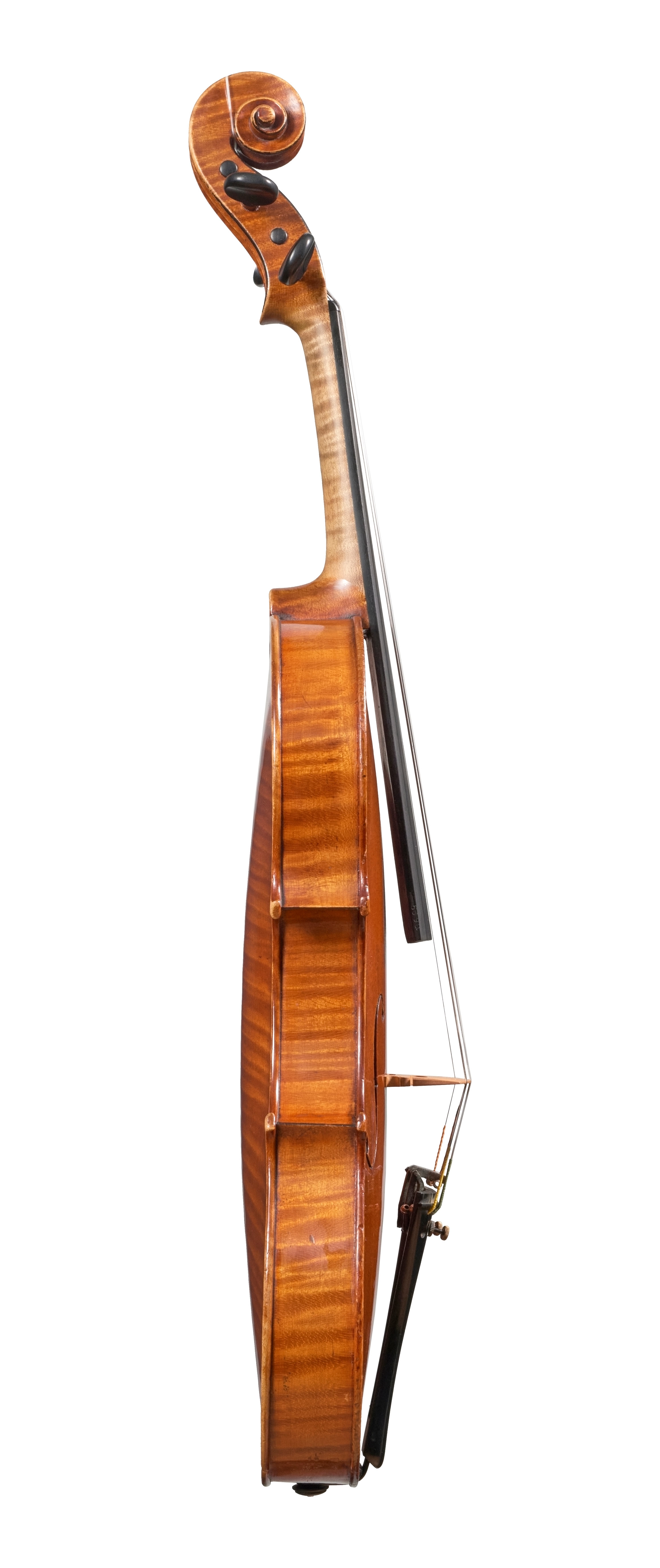 A fourth-generation luthier from Mirecourt, Nestor Audinot was born in that town in 1842. Trained by his father Leopold, from 1863 he worked for Sébastien Vuillaume in Paris on the boulevard Bonne-Nouvelle. He opened his own business in 1868 at no.17 Faubourg St Denis, but abandoned it following the death of Sébastien Vuillaume in 1875 to take over his shop in boulevard Bonne-Nouvelle. The enterprise was very successful and he retired in 1908, handing the shop to Eugène Corviser. He died in 1920. His output was prolific and his instruments are firmly in the modern Parisian tradition, made with great exactitude, although some are set apart by a certain extravagance in detail. All are on classical models of Stradivari or Guarneri, with a strong, bright deeply coloured varnish.