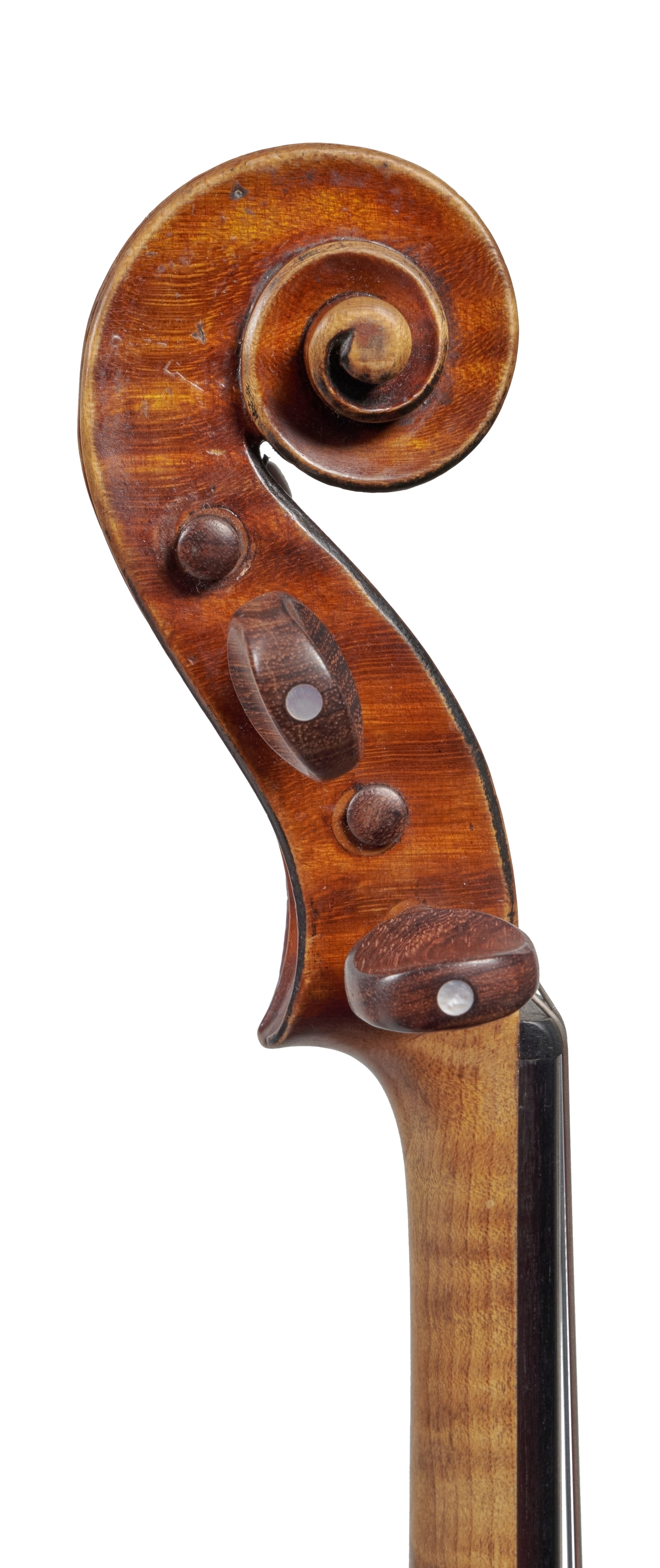 Born in Mirecourt in 1823, Boullangier trained in his home town, and then in Paris with J.B. Vuillaume and Gand & Bernardel. In 1849 he moved to London to work for Edward Withers. In 1858 he branched out on his own, at first in Charlotte Street, then University Street, then Dean Street and finally Frith Street in Soho, where he remained until his death in 1888. His work was an admirable fusion of Parisian and London styles – he benefited from experience with John Lott through Withers. His instruments are very fine reproductions of classical work, especially Guarneri del Gesù, with a slightly less constrained manner than French contemporaries and distinctive personal touches. He used a very fine, clear, red-brown varnish. He received the royal appointment of the Duke of Edinburgh, an enthusiastic amateur violinist, and was awarded prizes at three London exhibitions. Many instruments were left unvarnished after his death, and these were finished and sold with his label by his daughter Josephine and son-in-law George White.