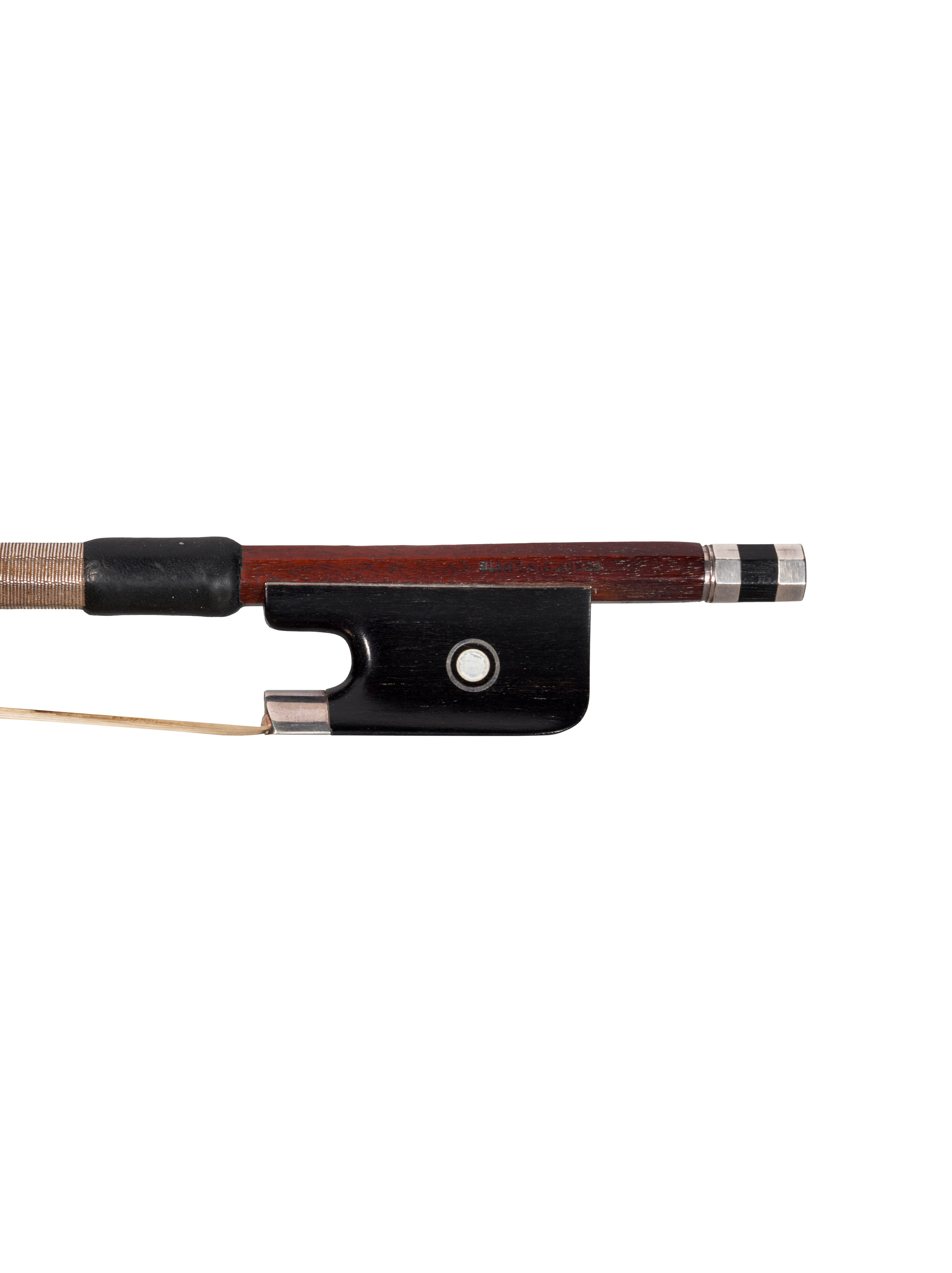 The stick of this bow is made of pernambuco and requires a UK re-export CITES permit - this will be applied for after the auction and a charge of £75 will be added to the invoice if you are registered outside the UK