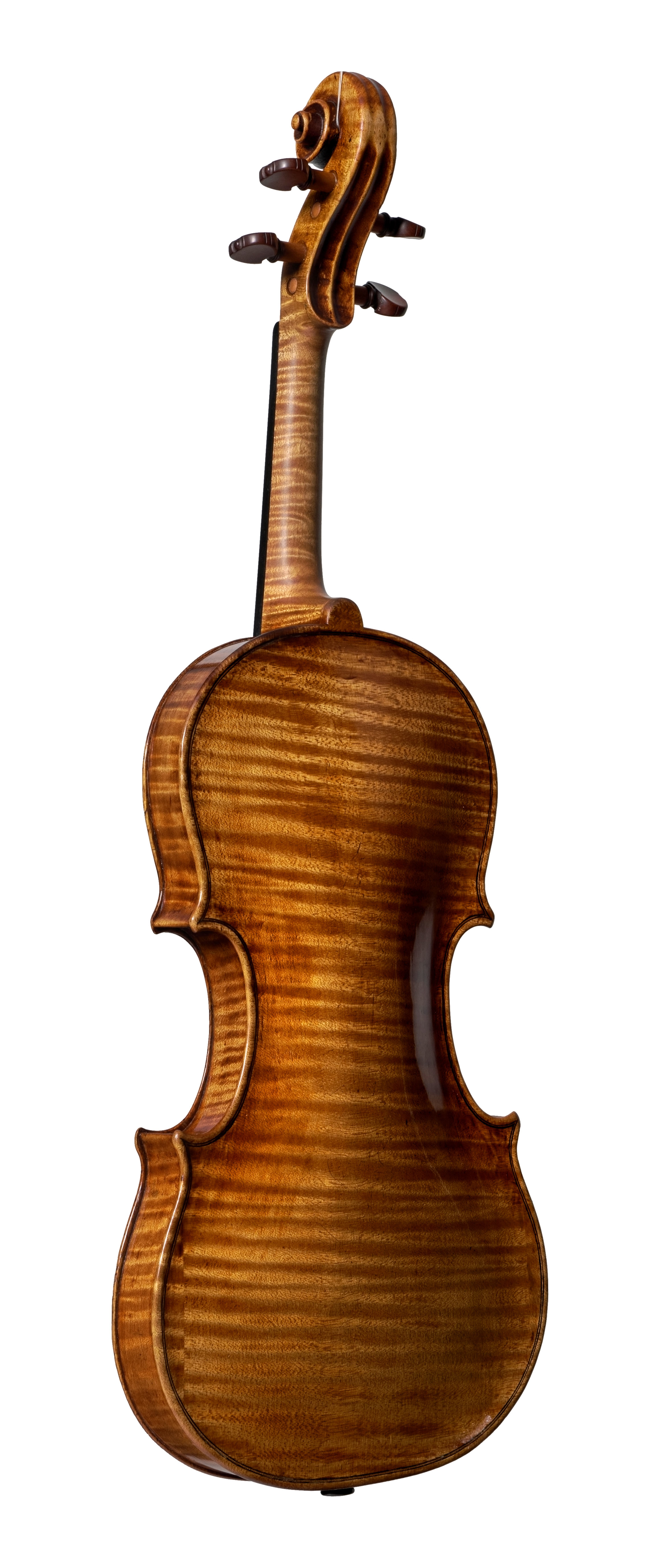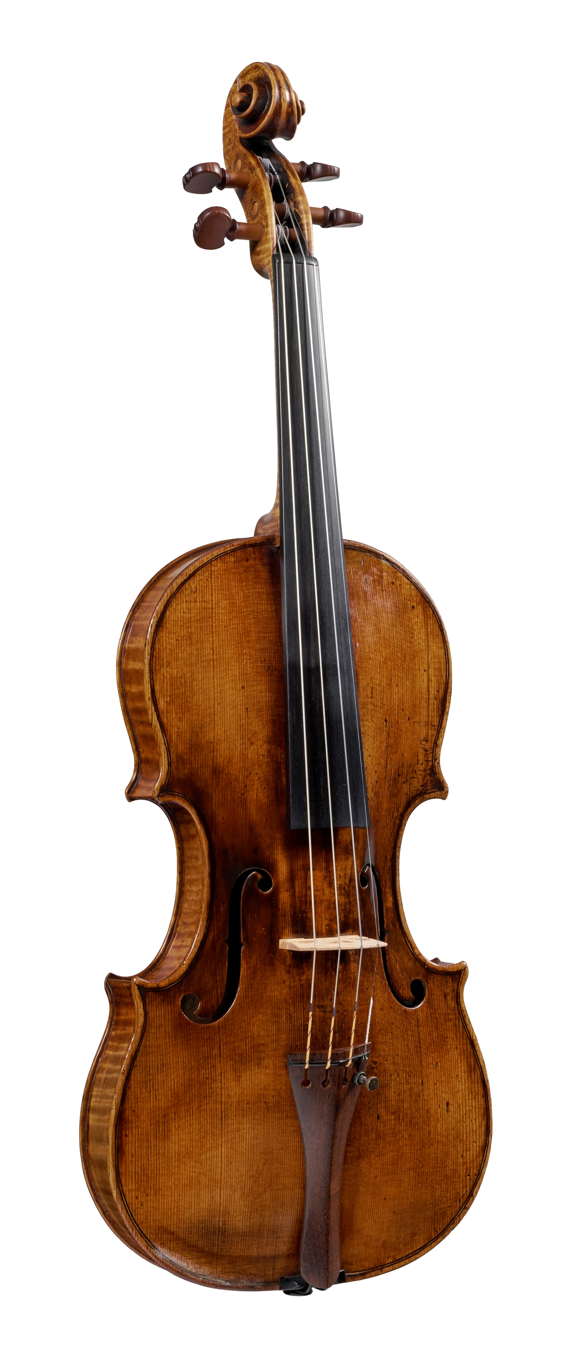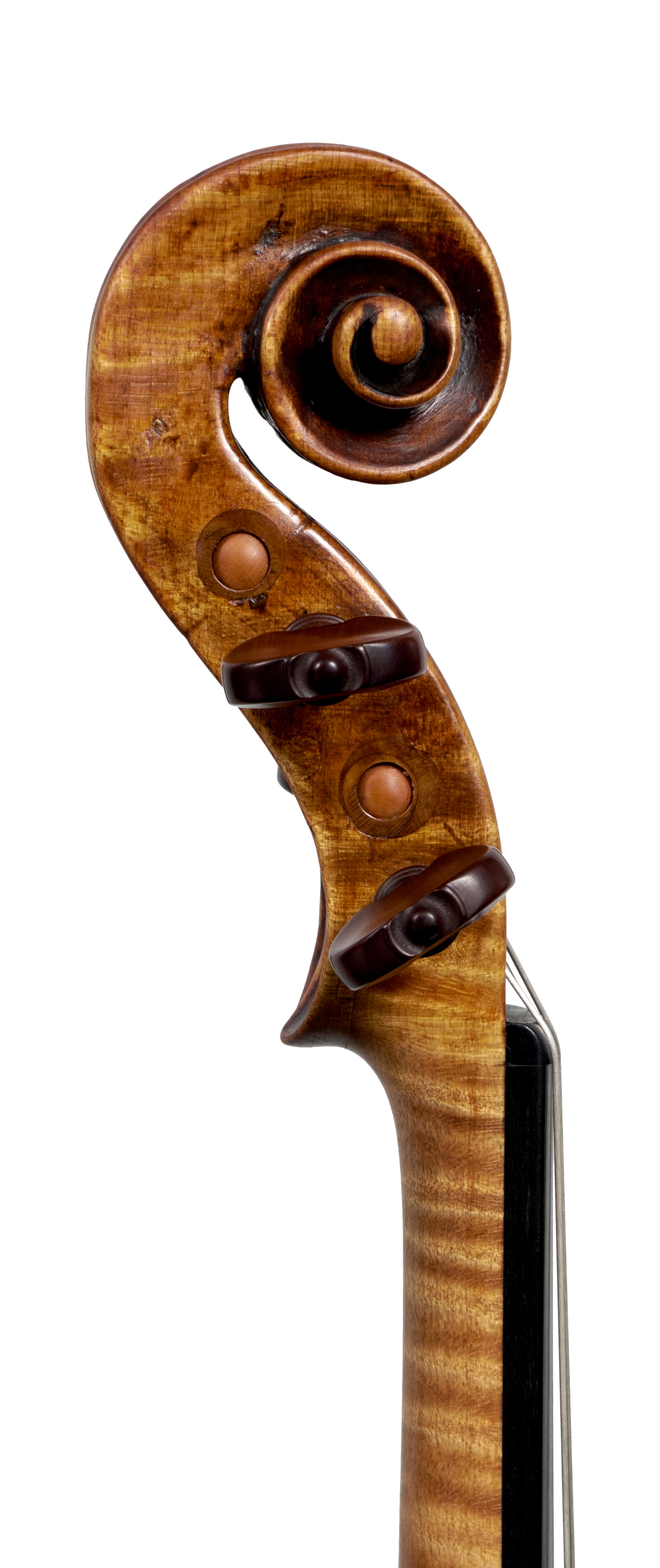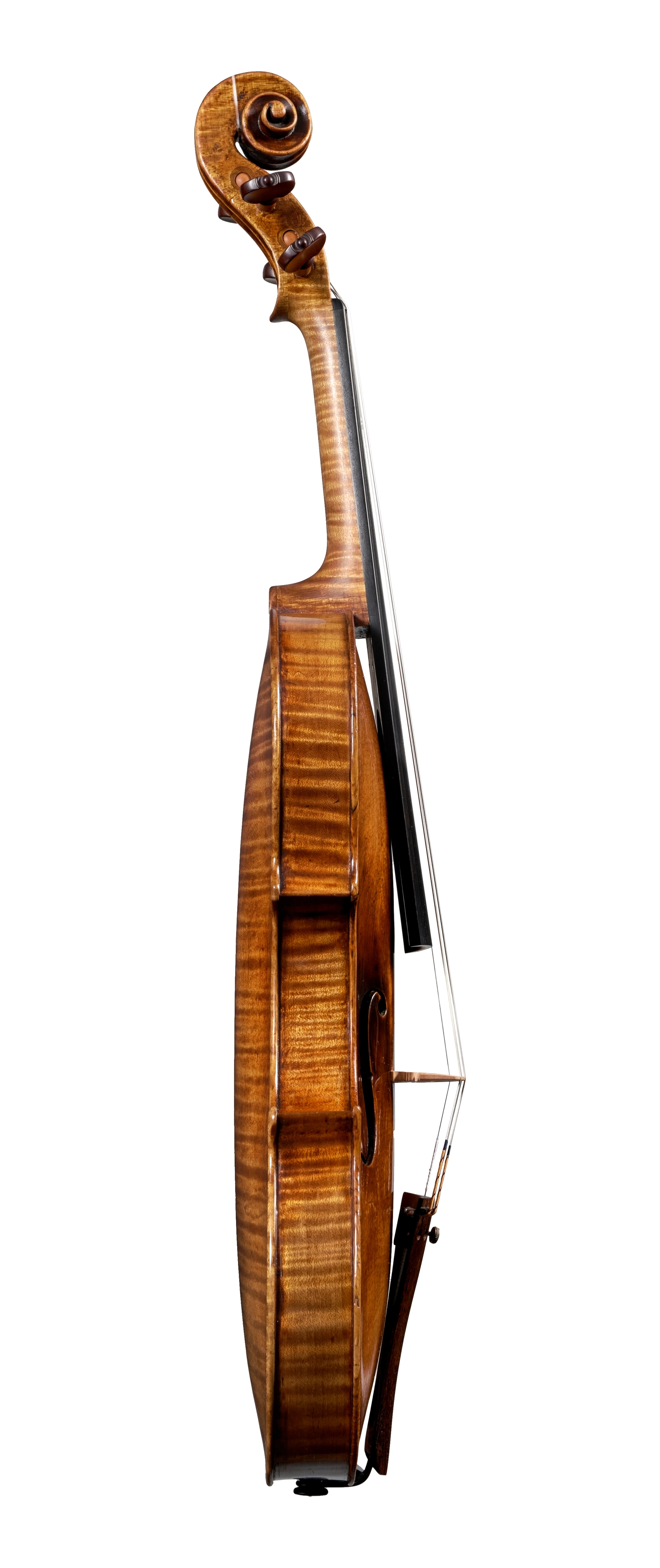 Montagnana’s early violins show Stainer’s influence, which was prevalent at the time. This is evident in the flowing f-holes and high archings of the 1721 violin. From about 1730 his models broadened, the archings flattened, and overall his work became more Italian in character. These later instruments make fine solo instruments, and the 1731 violin is typical of Montagnana’s best work.