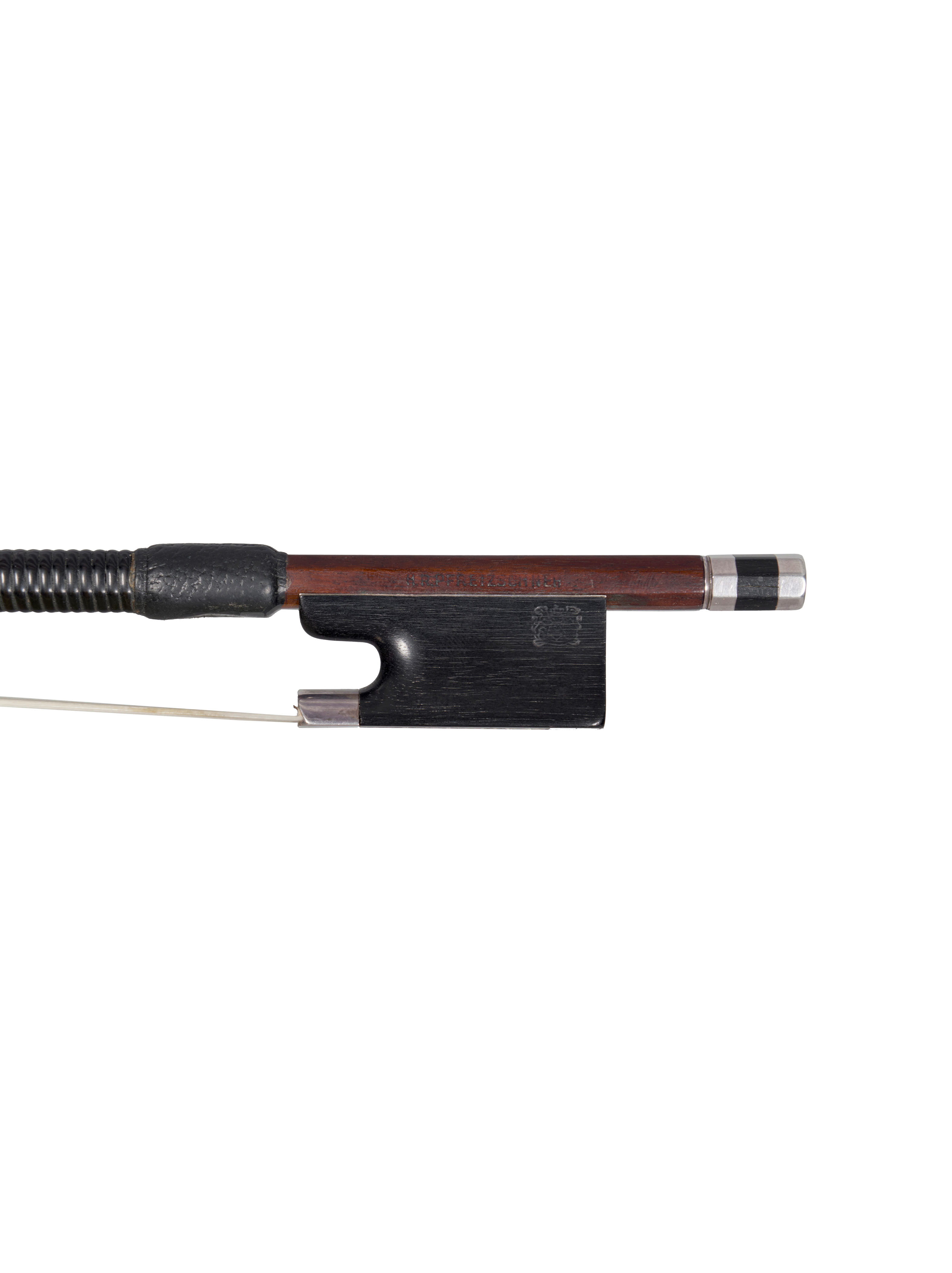 A silver-mounted violin bow by H.R. Pfretzschner