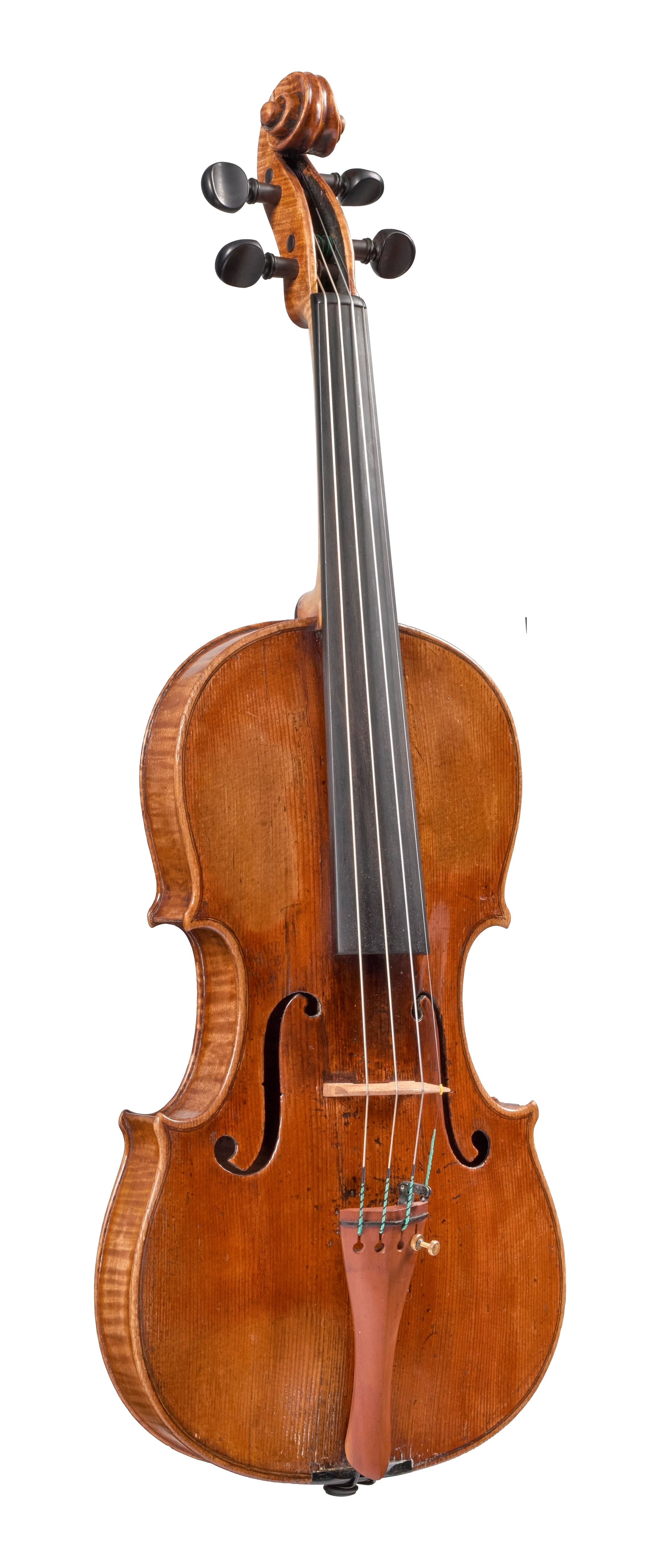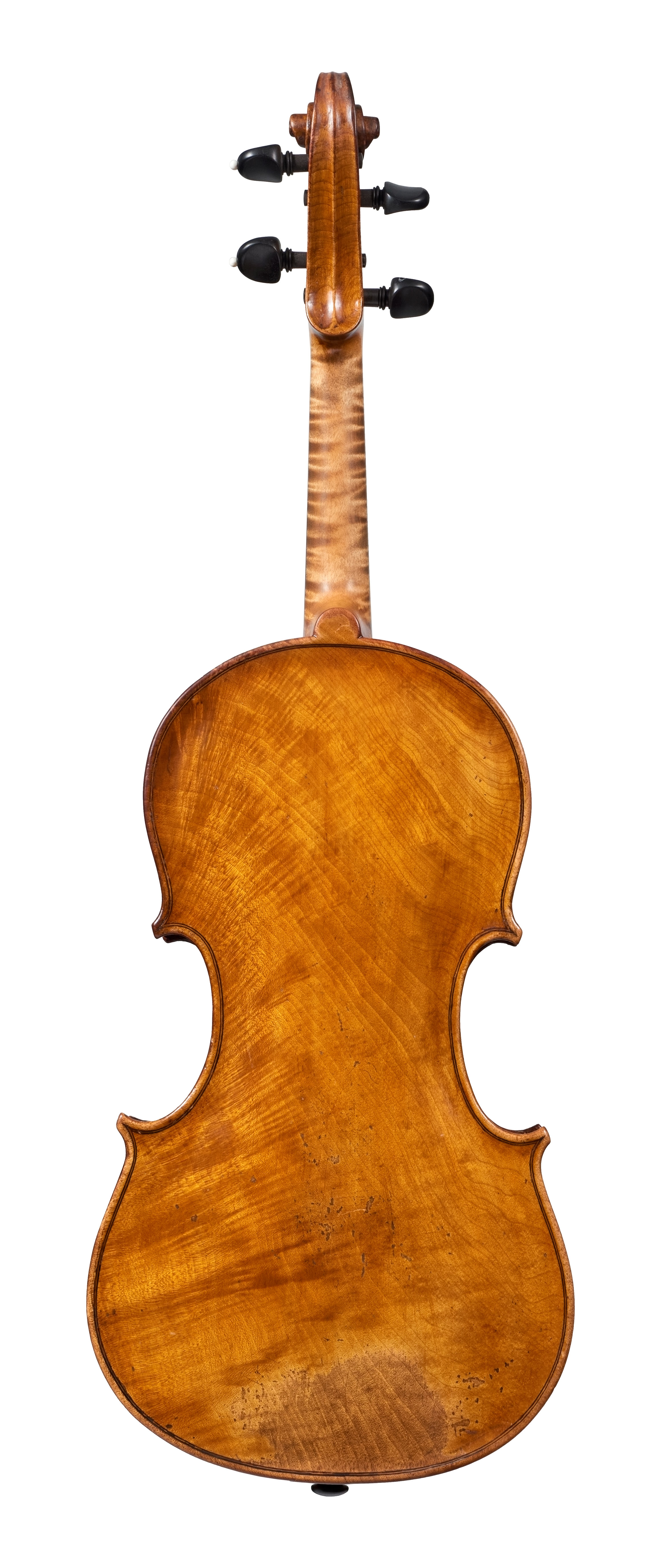 The upright f-holes, the use of paper in the purfling and the placement of the pegs give the two violins illustrated here a characteristically Neapolitan appearance. Neither of them has the greenish tint in the varnish that one often sees in Gaglianos of this period, but instead a rather attractive golden-orange. As is the case with many of the Neapolitan makers, however, the quality of the materials, and indeed of the workmanship, can vary from one instrument to the next.