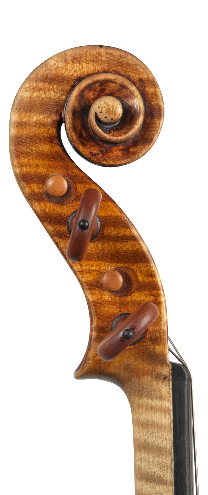 This violin shows their familiarity with Guadagnini’s Turin period, and was made at the height of their career. The very convincing choice of materials as well as the model used is indicative of their deep understanding of copying an instrument in all its aspects. The sound is complex and colourful, with a powerful resonance and immediate response.